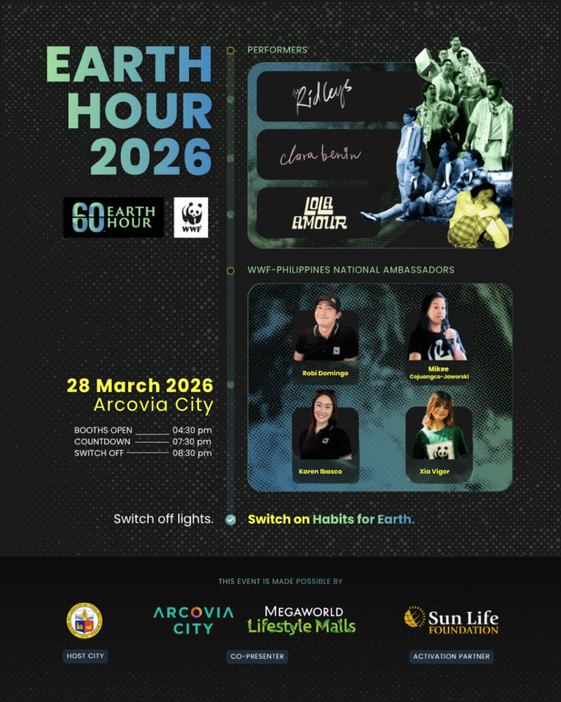 PASIG CITY – It’s lights off, music on this March 28, as Earth Hour Philippine 2026 brings a star-studded night to ArcoVia City in Pasig, marking the 20th global Earth Hour switch-off.