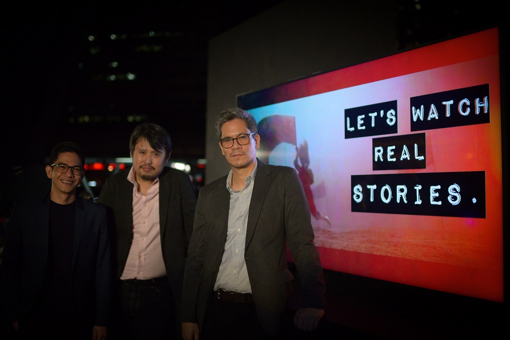 Art Fair Philippines and Samsung Philippines opened the 10 Days of Art with “The Unconfined Cinema: An Outdoor Cinema Experience” at the Ayala Triangle Gardens in Makati. Photo shows (from left) film critic Philbert Dy, award-winning writer and editor Erwin Romulo, film archivist and historian Teddy Co.
