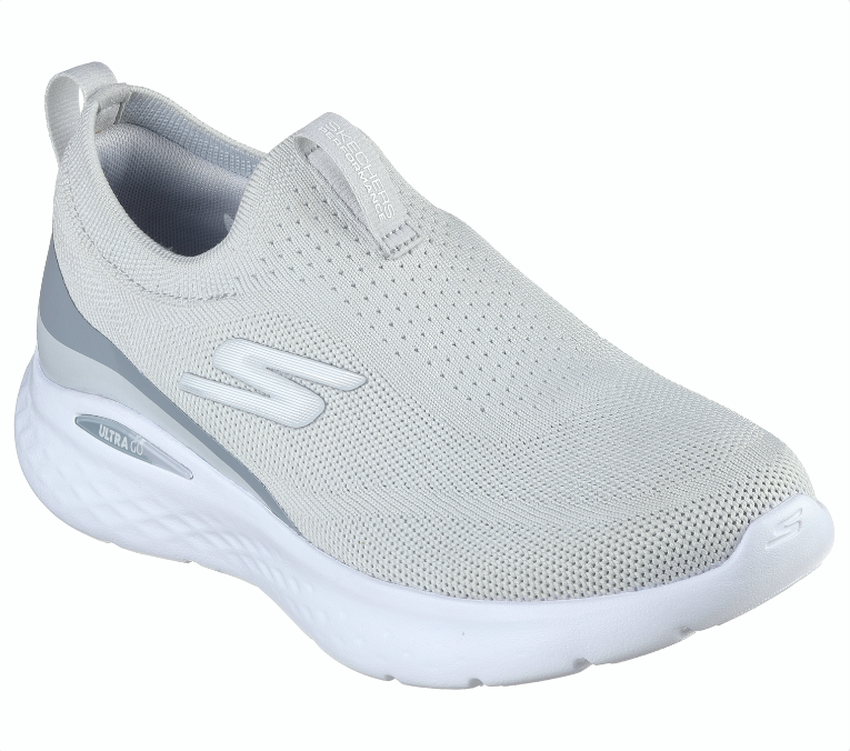 Workout in comfort and peace of mind wearing Skechers Go Run Lite – Aurora Sky. Its upper knit is made with 40% Recycled Polyester and its heel lining is made with 100% Recycled Polyester. This laceless Stretch Fit® performance style is designed with a breathable recycled mesh upper, an Air-Cooled Goga Mat™ comfort insole, and a lightweight ULTRA GO® cushioned midsole. Your every stride is made even more comfortable with the Ultra-lightweight Skechers® Soft Stride™ cushioning.