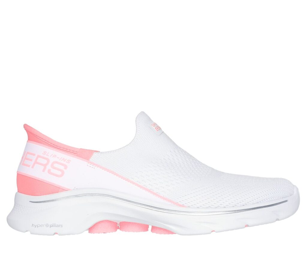 Walk in easy-wearing comfort with Skechers Hands Free Slip-ins® GOwalk 7 – Mia. Designed with Skechers Exclusive Heel Pillow™, this sporty TOUCHLESS FIT® style features a Stretch Knit mesh upper with a branded heel band, a Skechers Air-Cooled Memory Foam® insole, lightweight ULTRA GO® cushioning, and high-rebound Hyper Pillar Technology™ for added support.