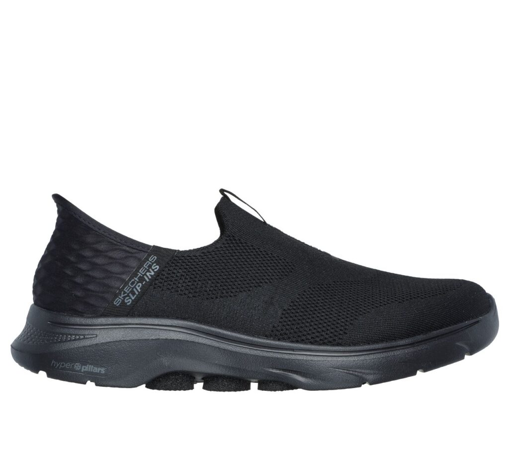 Step-in to convenient walking comfort and cushioning wearing Skechers Hands Free Slip-ins®: GO WALK 7™ – Easy On 2. Designed with our exclusive Heel Pillow™, this sporty style features a mesh and synthetic upper, a Skechers Air-Cooled Memory Foam® insole, lightweight ULTRA GO® cushioning, and high-rebound Hyper Pillar Technology™ for added support.