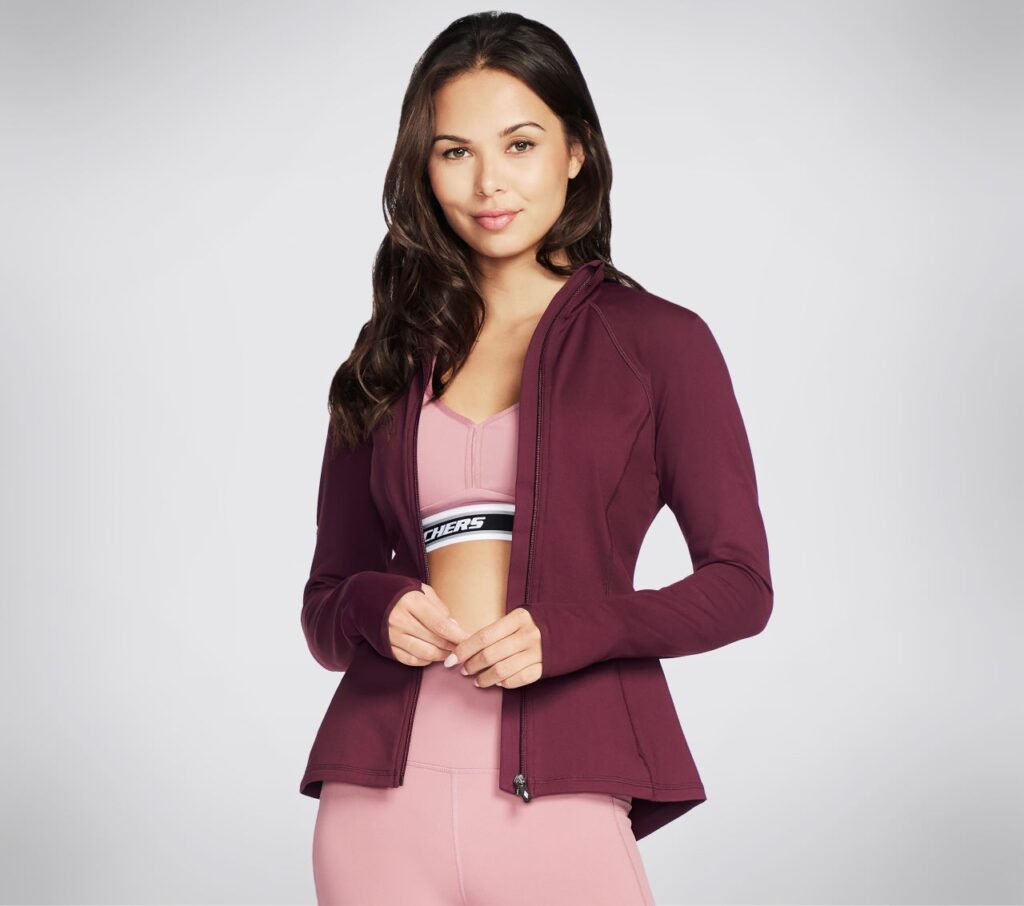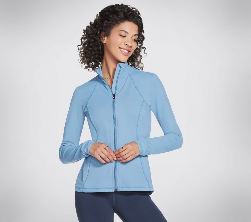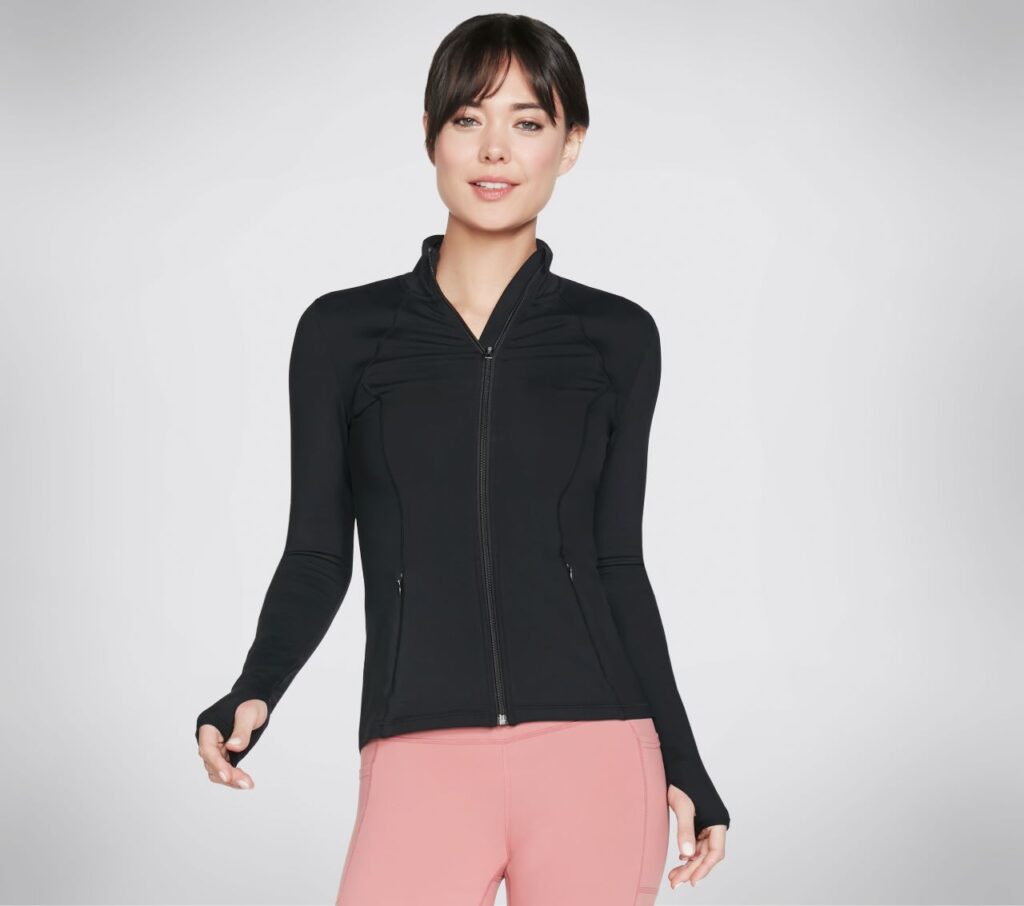 Walk your walk in flexible comfort and style in the Skechers GO WALK Mesh Jacket. This athletic mock neck zip-front jacket features a GO FLEX® moisture-wicking nylon and spandex blend fabric, long sleeves with thumbhole detail, back power mesh trim and on-seam concealed zip pockets.