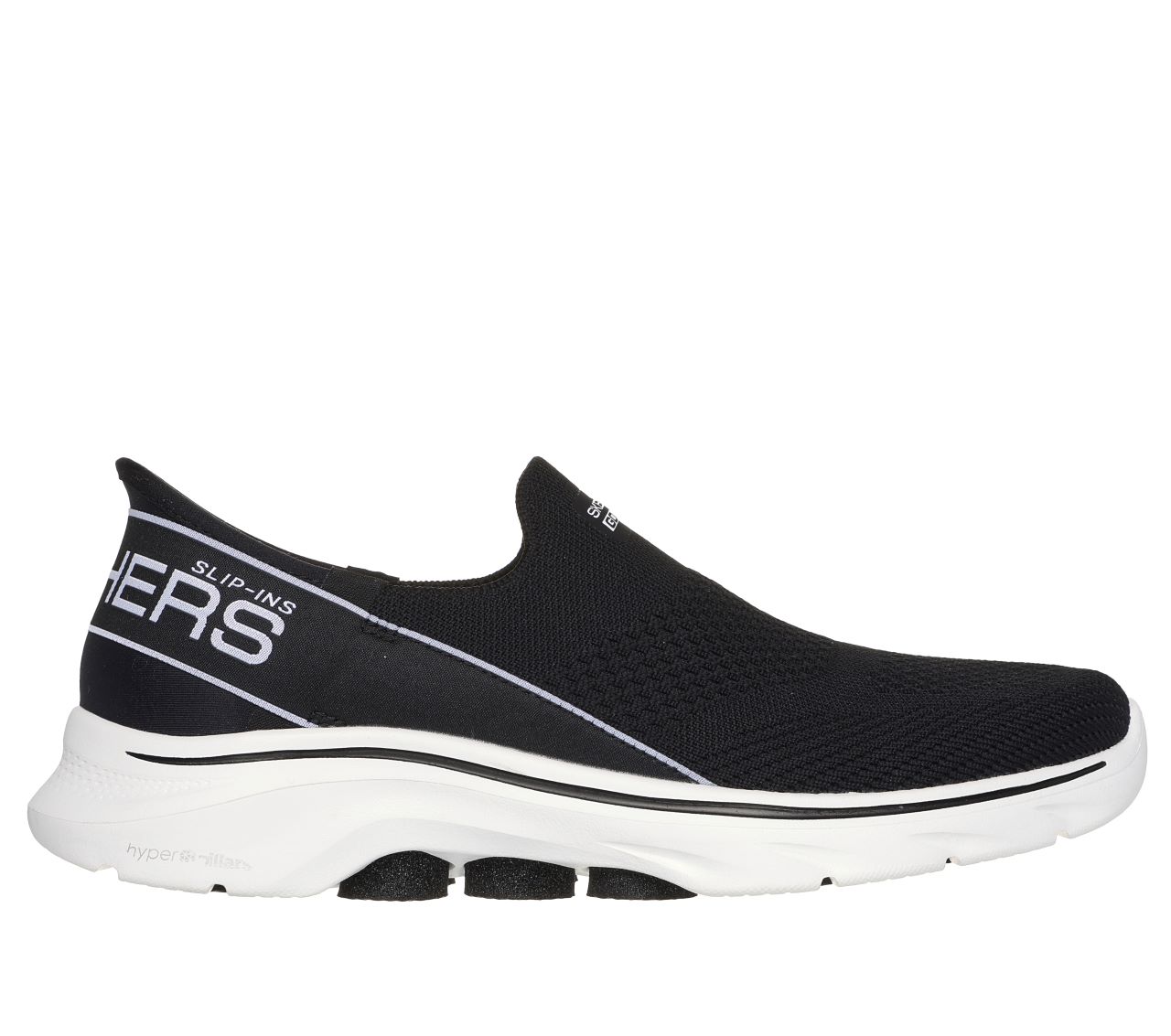 Walk in easy-wearing comfort with Skechers Hands Free Slip-ins® GOwalk 7 – Mia. Designed with Skechers Exclusive Heel Pillow™, this sporty TOUCHLESS FIT® style features a Stretch Knit mesh upper with a branded heel band, a Skechers Air-Cooled Memory Foam® insole, lightweight ULTRA GO® cushioning, and high-rebound Hyper Pillar Technology™ for added support.