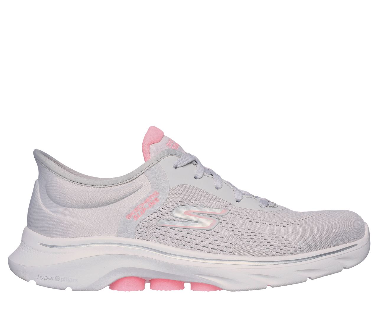 Take a step during National Walking Month in Skechers Hands Free Slip-ins®: GOwalk 7™ – Valin. Designed with our exclusive Heel Pillow™, this walking style features an engineered mesh upper with a laced front. Experience the ultimate in comfort with Skechers Air-Cooled Memory Foam® insoles, lightweight ULTRA GO® cushioning, and high-rebound Hyper Pillars™ for added support.
