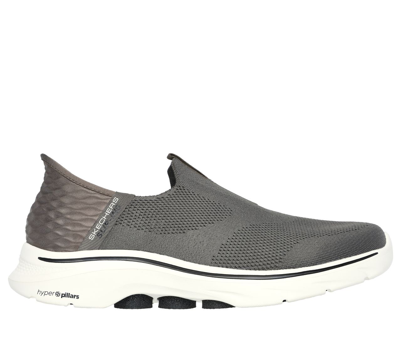 Step-in to convenient walking comfort and cushioning wearing Skechers Hands Free Slip-ins®: GO WALK 7™ – Easy On 2. Designed with our exclusive Heel Pillow™, this sporty style features a mesh and synthetic upper, a Skechers Air-Cooled Memory Foam® insole, lightweight ULTRA GO® cushioning, and high-rebound Hyper Pillar Technology™ for added support.