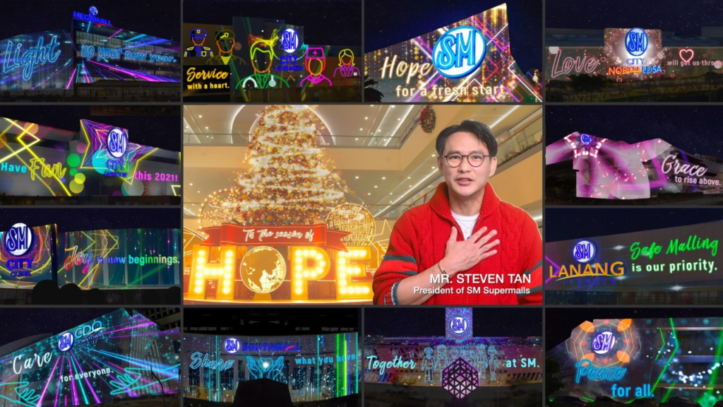 “SM aims to spur optimism as we bid goodbye to a challenging 2020 and prepare for a fresh start in 2021. We continue to stand with our community even during tough times and now as we face the New Year together with a renewed hope and joy,” said SM Supermalls President Steven Tan.