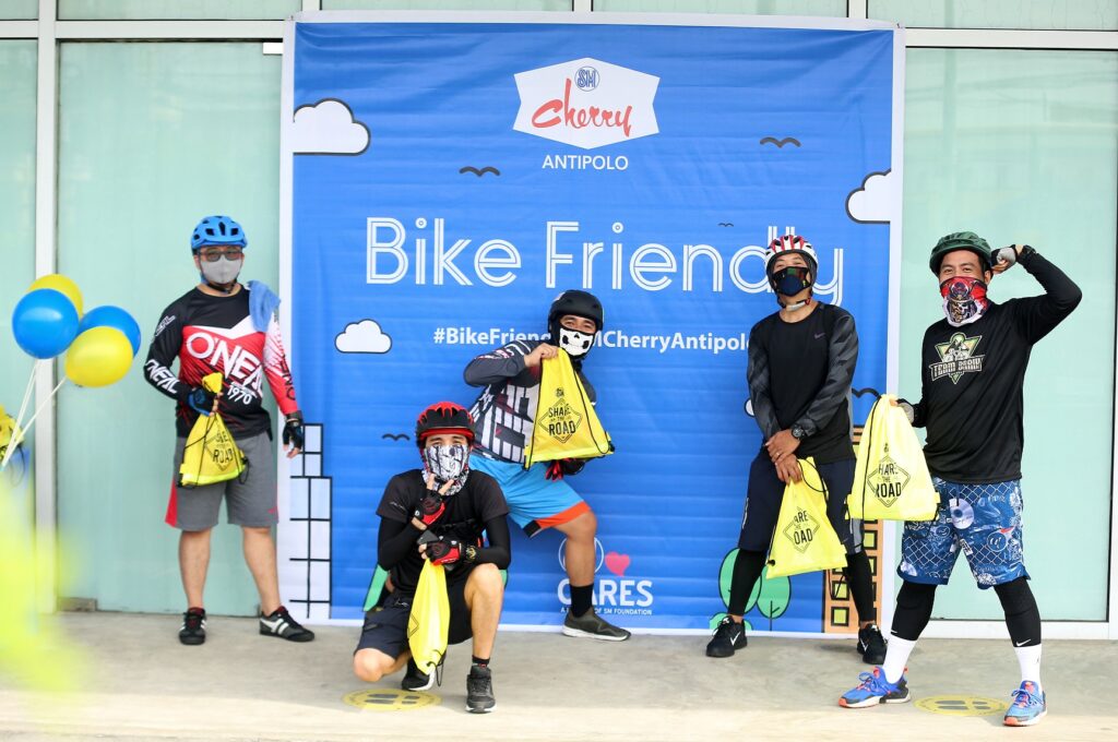 Bike Friendly Campaign in the east kicks off with a launch ceremony led by Marikina City Vice Mayor Marion Andres (center) with SM Supermalls President Steven T. Tan (2nd from left), Senior Assistant Vice President Johanna Rupisan (3rd from right), Regional Operations Manager Engr. Dennis Martel (left). Joining them are Lester Pimentel Wong of Vertis Star Chinese Café, Inc. (right) and a representative of Marikina Biking Community (2nd from right). Joining the Bike Friendly launch at SM City Masinag is Bgy. Mayamot Kagawad Rico Paulo Estanislao and Assistant Mall Manager Raymond Bonifacio Bikers bound to the highlands of San Mateo drop by SM City San Mateo’s driveway to get Share The Road string bags during the Bike Friendly campaign launch Friends who bike together, stay together. These bikers happily pose for the camera in SM Cherry Antipolo at the launch of Bike Friendly Campaign These bikers flex their loot bags at the launch of Bike Friendly campaign in SM Cherry Antipolo