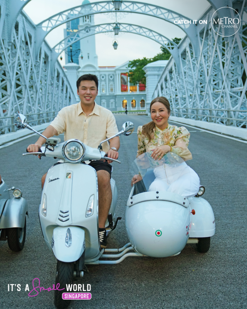 In lieu of a regular guided tour, Small and her son Timothy rode along with Storytellers and zipped around the city in the sidecars of restored vintage Vespa scooters. Small and Timothy booked a night tour with Singapore Side Cars – the world’s first vintage Vespa sidecar tour – and rode through quaint alleyways, met with locals, and enjoyed the glittering Singapore skyline in a whole new way.