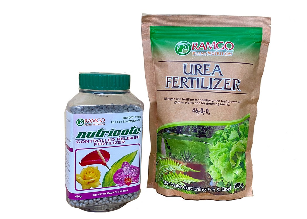 Ramgo fertilizers for your plant nutrition: Nutricote for colorful flowers and Urea for healthy garden plants.