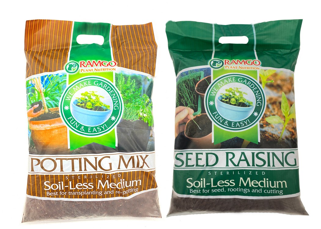 Sterilized soil-less Potting Mix and Seed Raising Mix from Ramgo for transplanting and seed rootings.