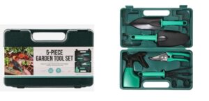 This ACE Hardware 5 – Piece Garden Tool Set includes a trowel, a transplanter, a cultivator, a bottle spray and pruning shear.