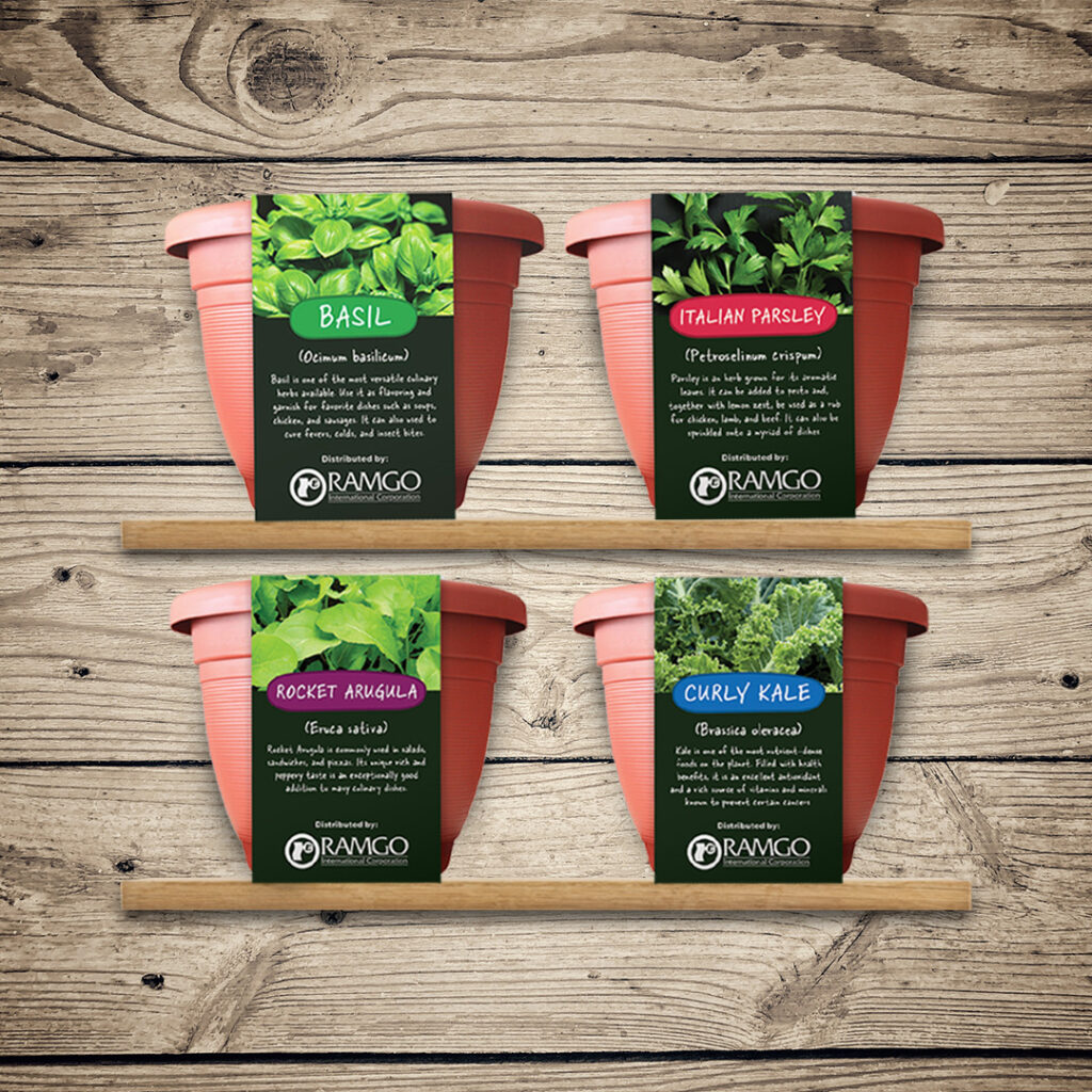 From your garden to your kitchen. Ramgo Seed herbal kits: Basil, Italian Parsley, Rocket Arugula and Curly Kale.