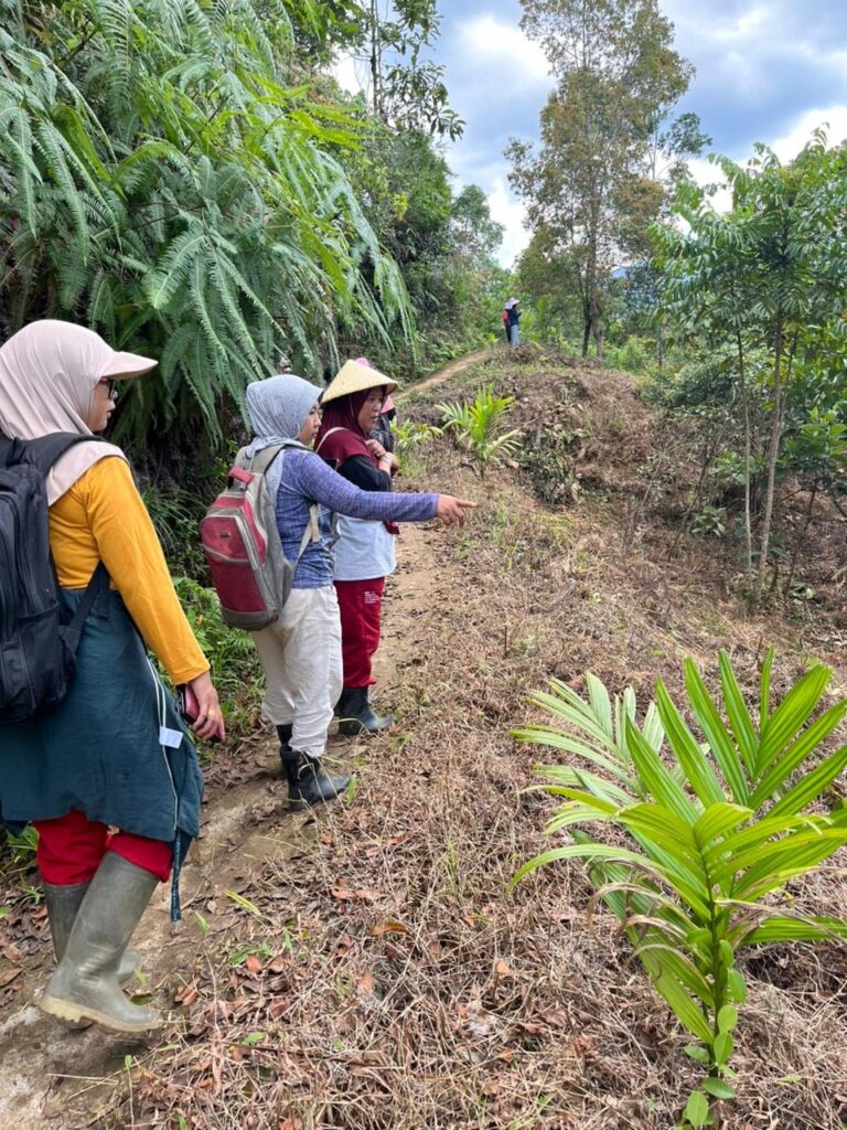 Awareness of forest conservation in the area was built through experience, as illegal logging has often encroached on customary lands around Penyandingan Village, leading to issues such as landslides and fallen trees during the rainy season. In response, the LPHA Ghimbe Pramunan was formed as a pillar for sustainable forest management, comprising 39 members organized into two business groups: KUPS Perempuan Anak Belai (Women’s Group) and KUPS Puyang Sure Aek Ghibe (General Resource Group). A strong emphasis is placed on women’s leadership in forest monitoring, including documenting physical changes to trails and assessing the availability of bamboo, rattan, and banana plants.