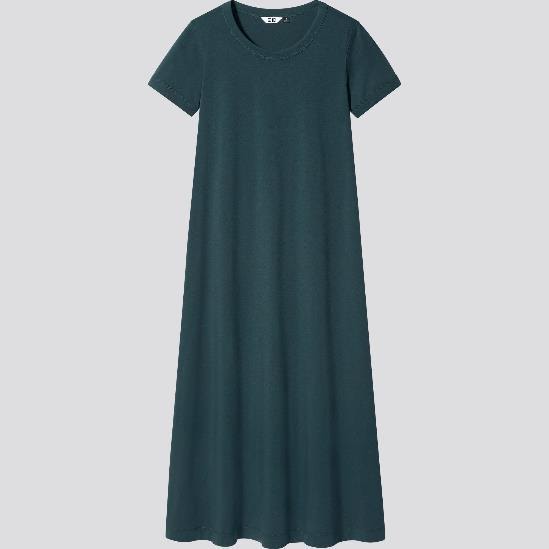 Women’s U AIRism Cotton A Line Short Sleeve Long Dress