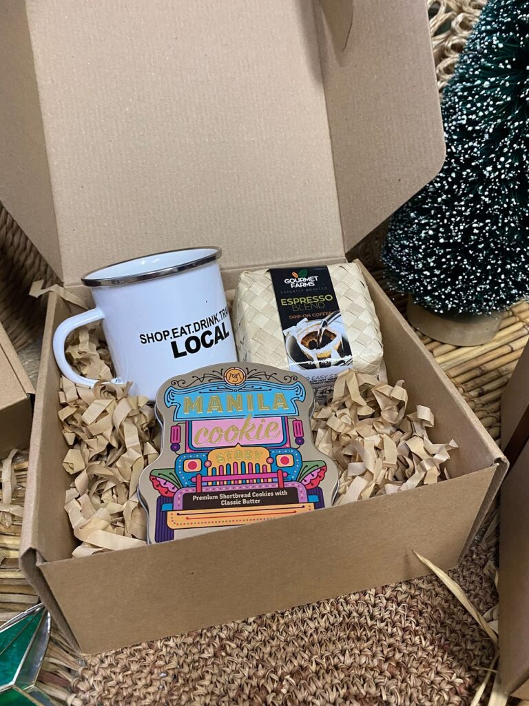 • Something brew-tiful. Merienda gift set includes Gourmet Farms’ expertly roasted drip coffee from Cavite, a statement mug and Manila Cookie Story’s shortbread cookies in an adorable jeepney tin.