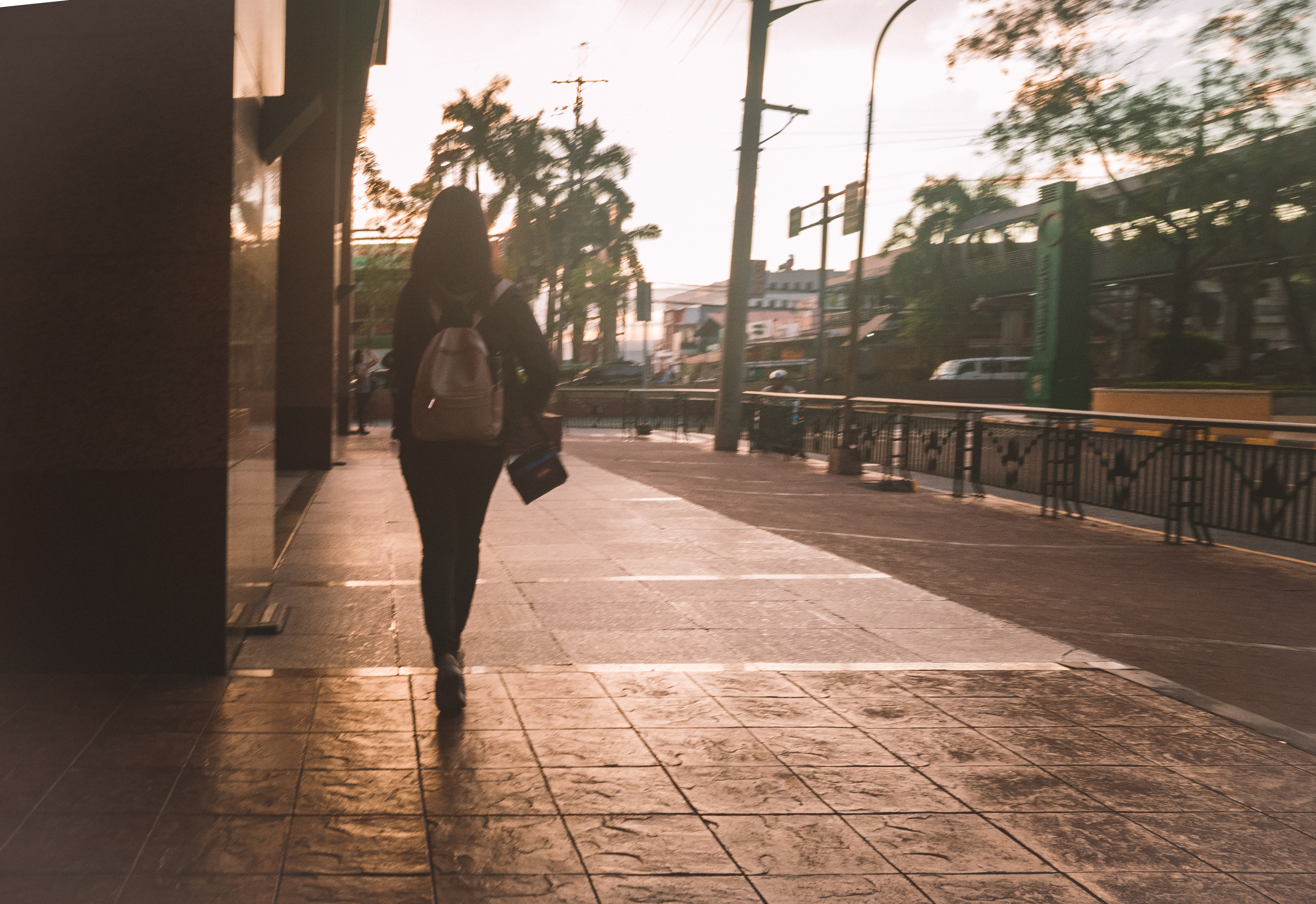As I rush to get to work, I shot a lady also walking in the same path as I’m traversing, so I discretely slowed down and shot her as she walks towards the rising sun.