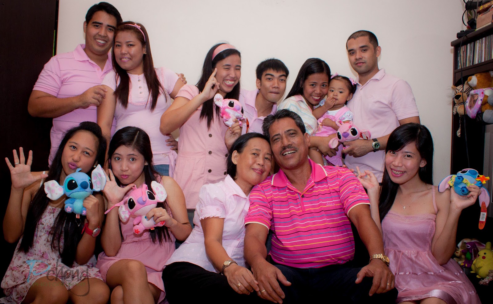 I was able to borrow some Stitch dolls from a friend since Daphne’s upcoming first birthday was going to have a Lilo and Stitch Hawaiian theme. So we had the family pose with the Stitch dolls.