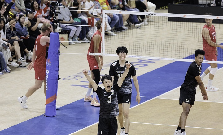 In front of a loud sellout crowd of 12,424, the two crowd darlings again ended the game in blowout fashion, with Japan sweeping the contest in straight sets, 25-20, 25-23, 25-19.