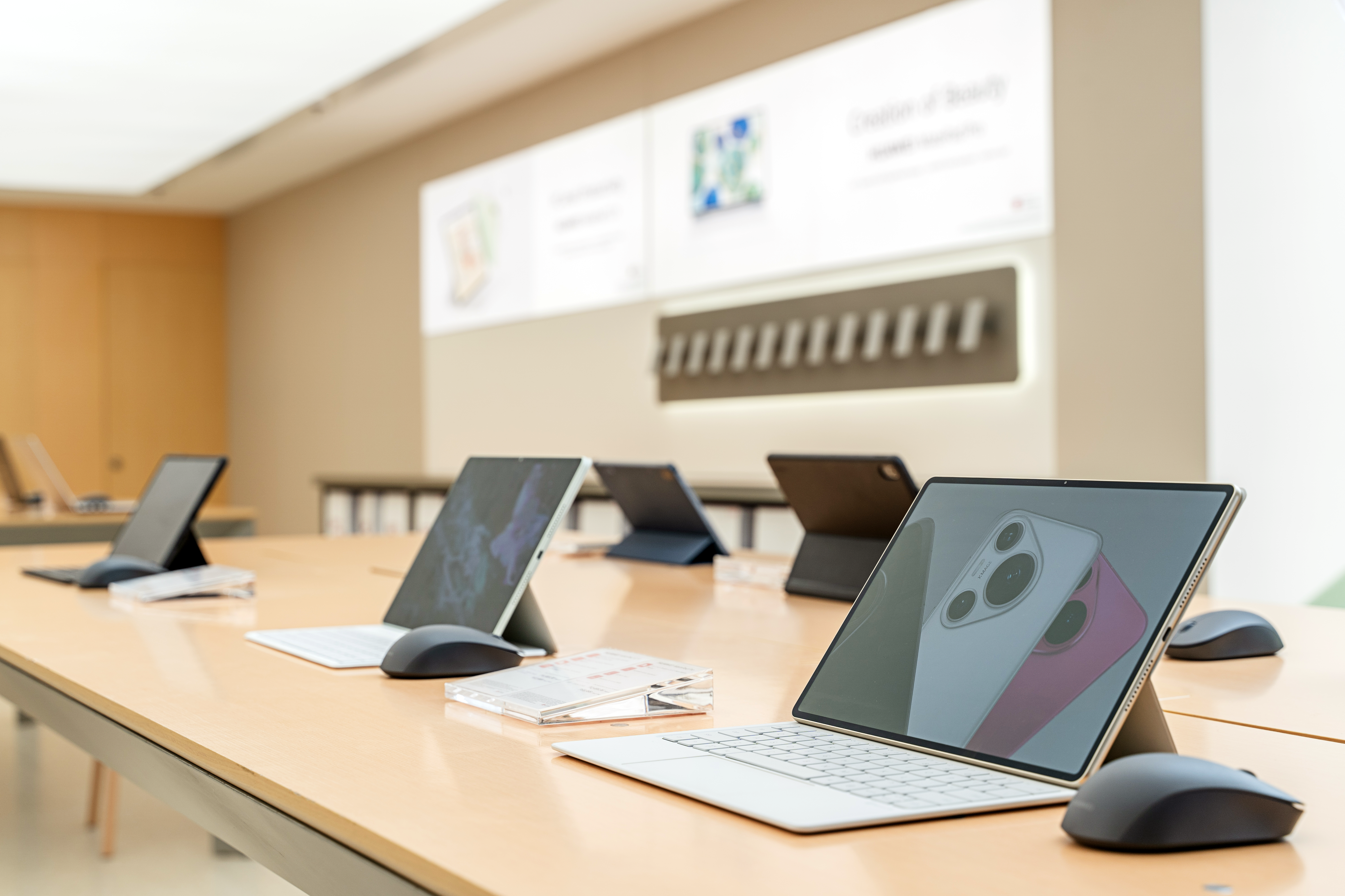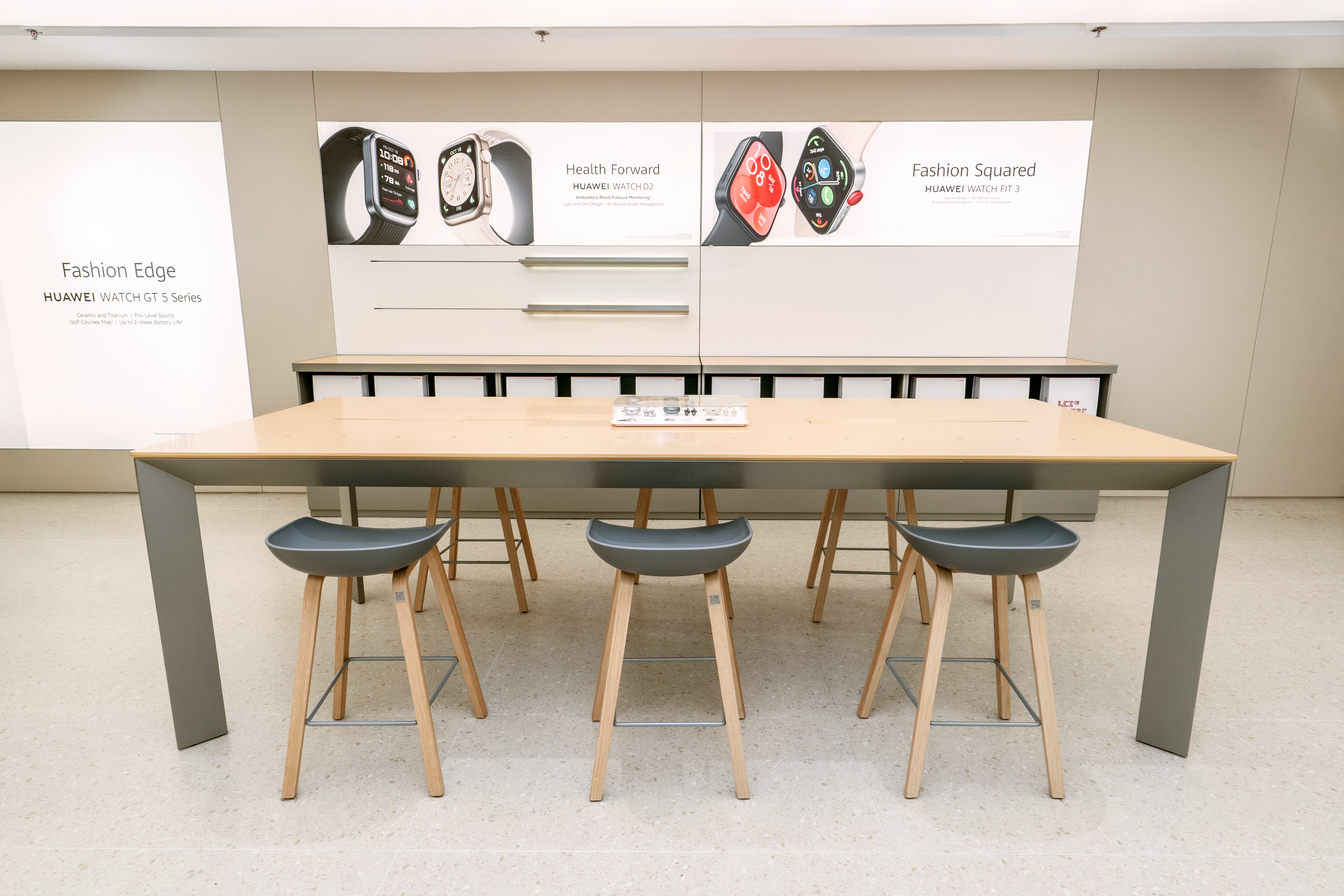 The spacious Product Display area invites customers to explore HUAWEI’s innovative product lineup, including smartphones, tablets, and wearable devices. Store visitors can touch, try, and explore every HUAWEI product to experience firsthand its performance, design, and innovative technology powering these devices. The Discover HUAWEI Area offers customers a unique community hub designed for learning sessions. Equipped with a high-definition LED screen, the space is intended to host interactive workshops and expert-led sessions on topics such as photography, digital art, and even fitness sessions to foster a collaborative, community atmosphere within the redesigned space.