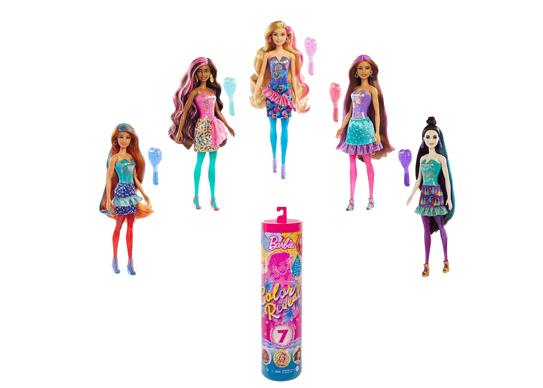 The Barbie Color Reveal Doll series is an exciting way of unboxing doll, each with a different combination of eye color, hairstyle, skin tone, sparkly bodice and glitter-molded legs.