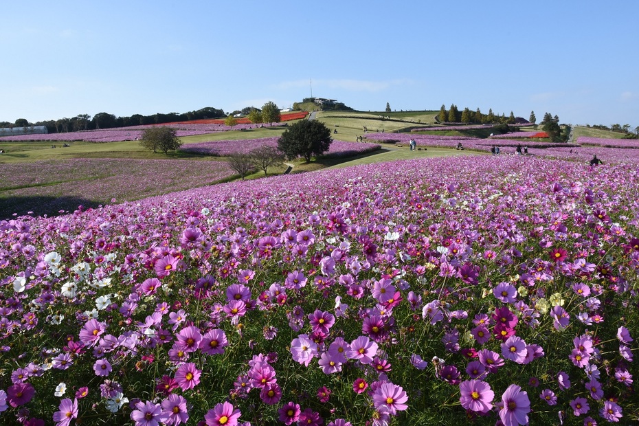 Set high above the Akashi Strait, Awaji Hanasajiki offers some of the most breathtaking views in Hyogo. The fields shift colors throughout the year, from yellow rapeseed in spring to pink and purple cosmos in fall. The site celebrates the island’s farming heritage, showing how open land and simple care can bring life to a community.