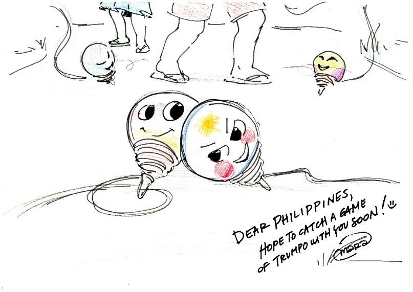 The Pixar artist lends her talent to recreate Filipino childhood memories on paper as she draws two kids playing the trumpo in the streets. She also leaves a special message expressing gratitude, hoping to visit the country to try the native game with the locals.